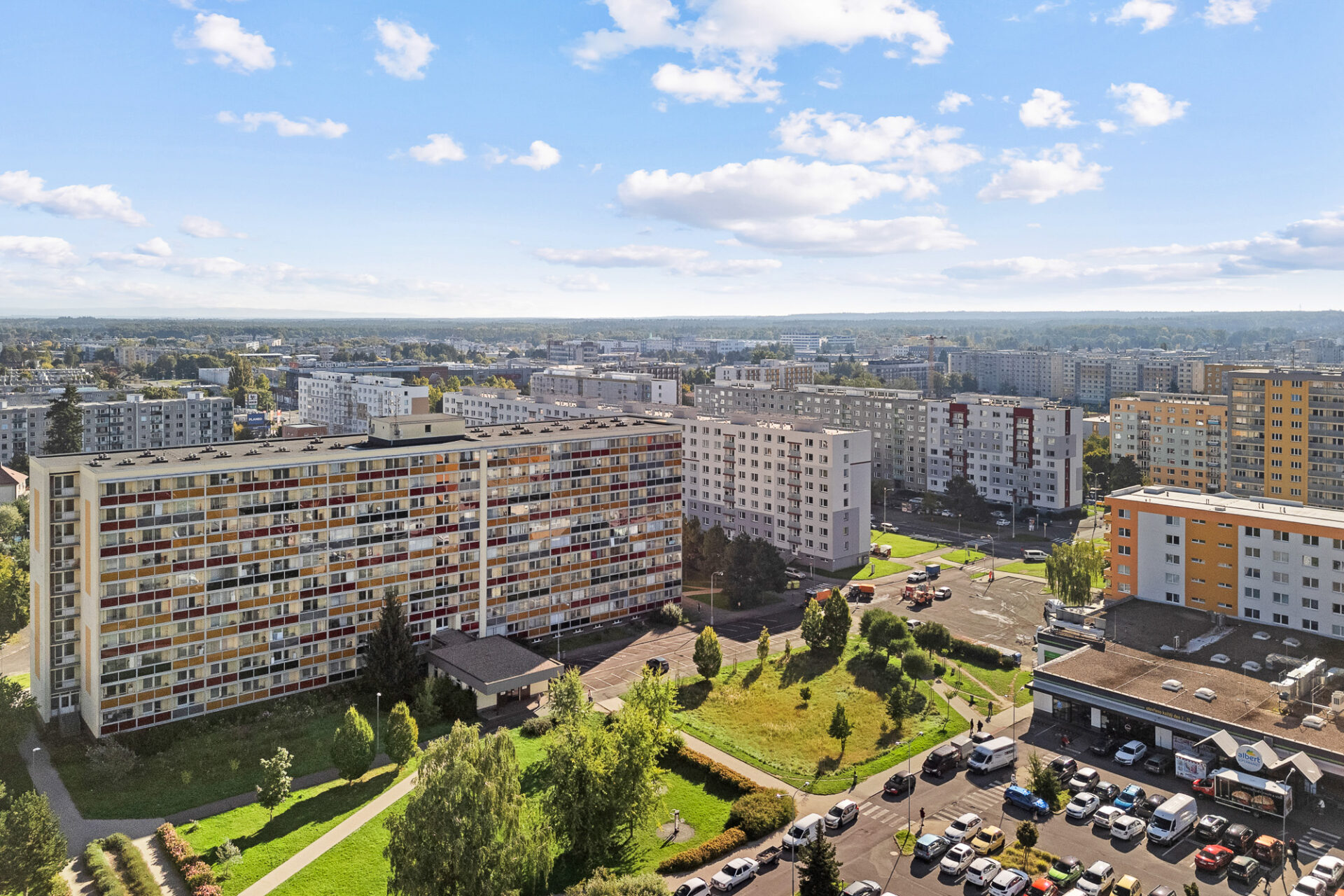 Jedná se o atraktivní lokalitu s veškerým zázemím v dosahu. V těsné blízkosti domu se nachází supermarket Albert a lékárna, v docházkové vzdálenosti pak zastávka MHD a obchodní centrum Futurum.