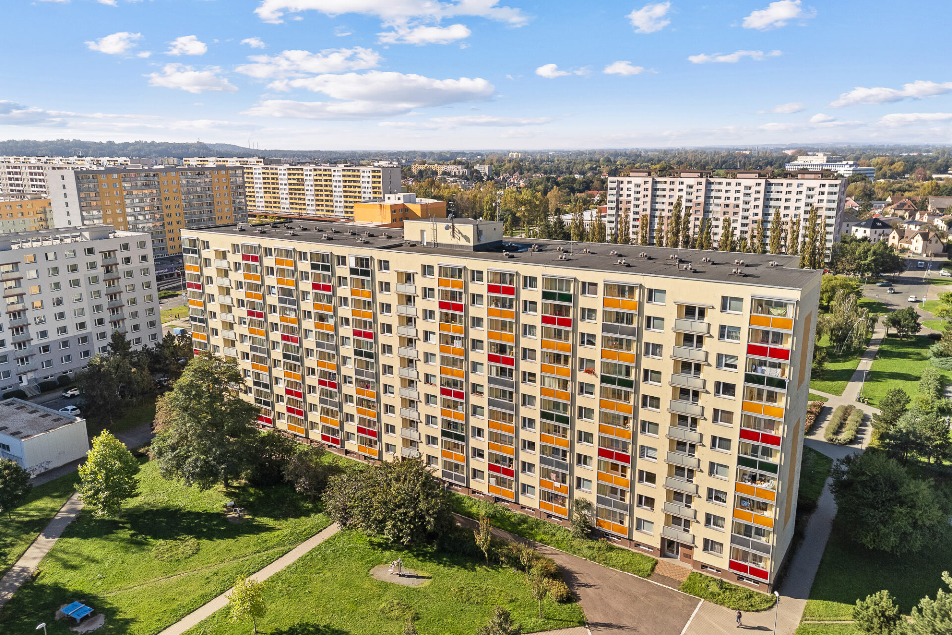 Bytový dům prošel kompletní revitalizací – nové stoupačky, střecha, zateplení, kamerový systém. K dispozici je v domě 6 výtahů. Velkou výhodou je také dobře fungující SVJ.