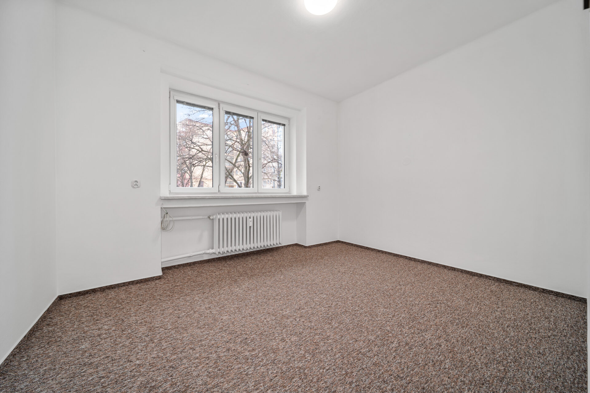 V celém bytě jsou instalována nová plastová okna s trojskly, která zajišťují perfektní odhlučnění i energetickou úsporu.
