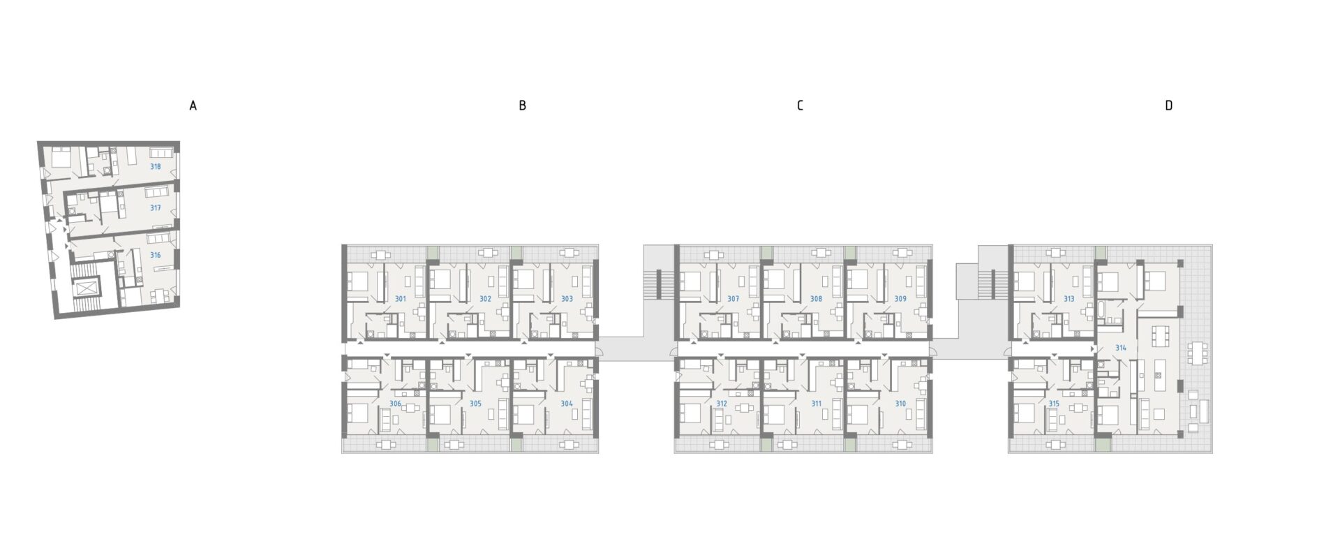 Projekt je výsledkem práce renomovaného ateliéru Žárovka Architekti a celkem nabízí 52 bytových jednotek.
