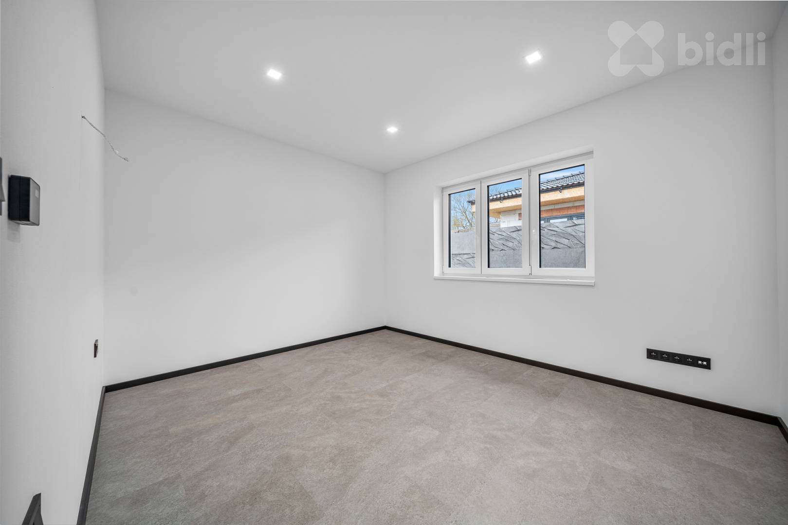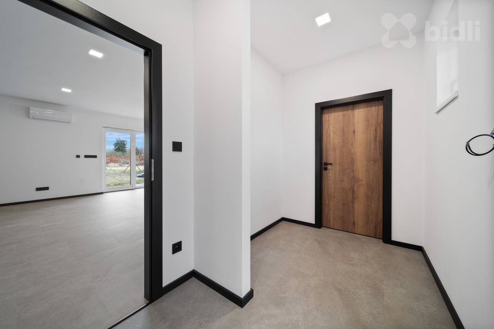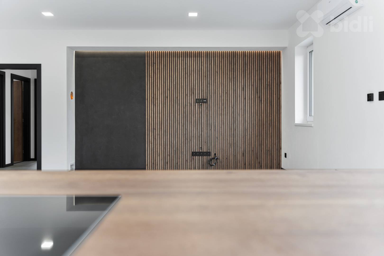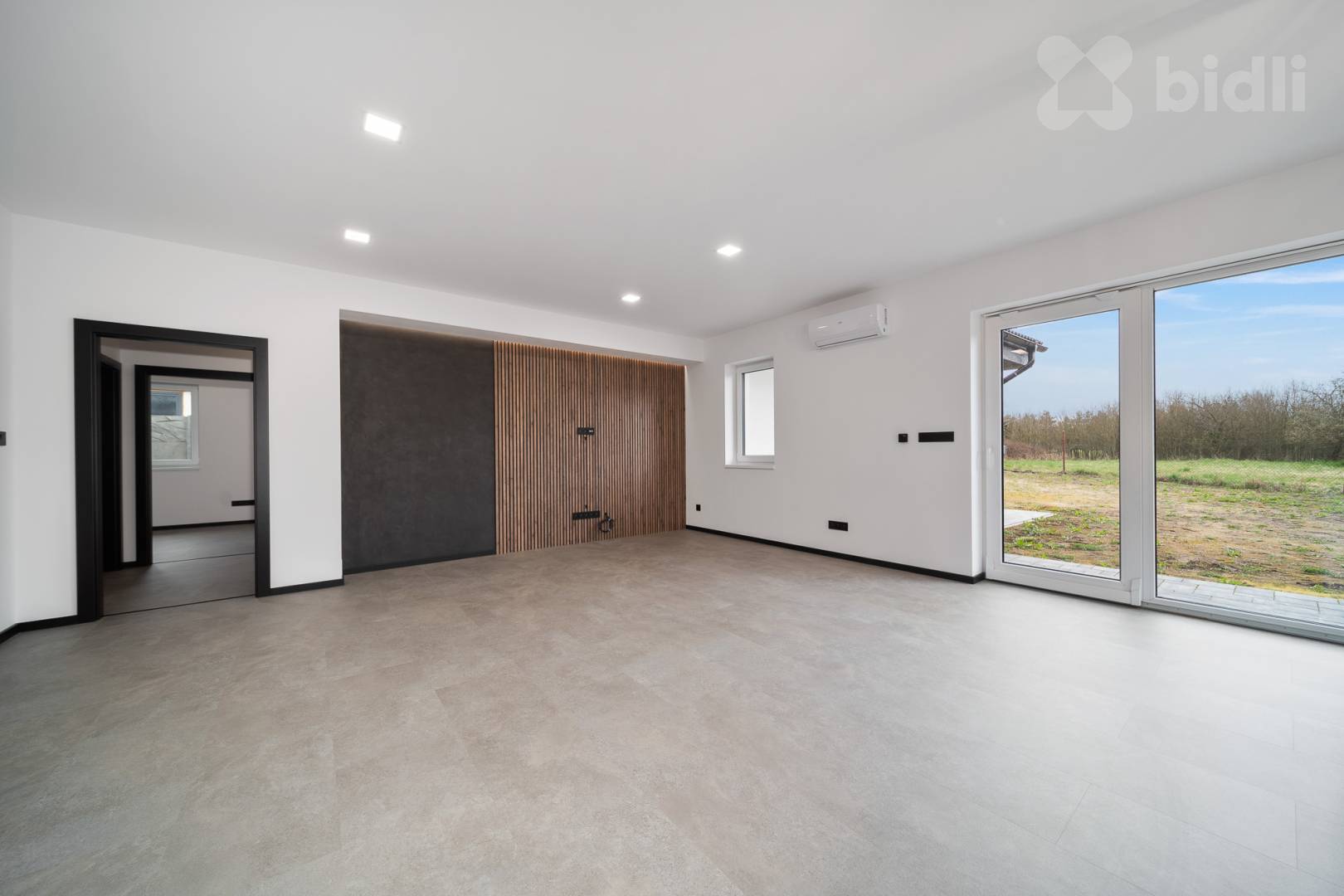 v obývacím pokoji klimatizace a příprava na krbová kamna