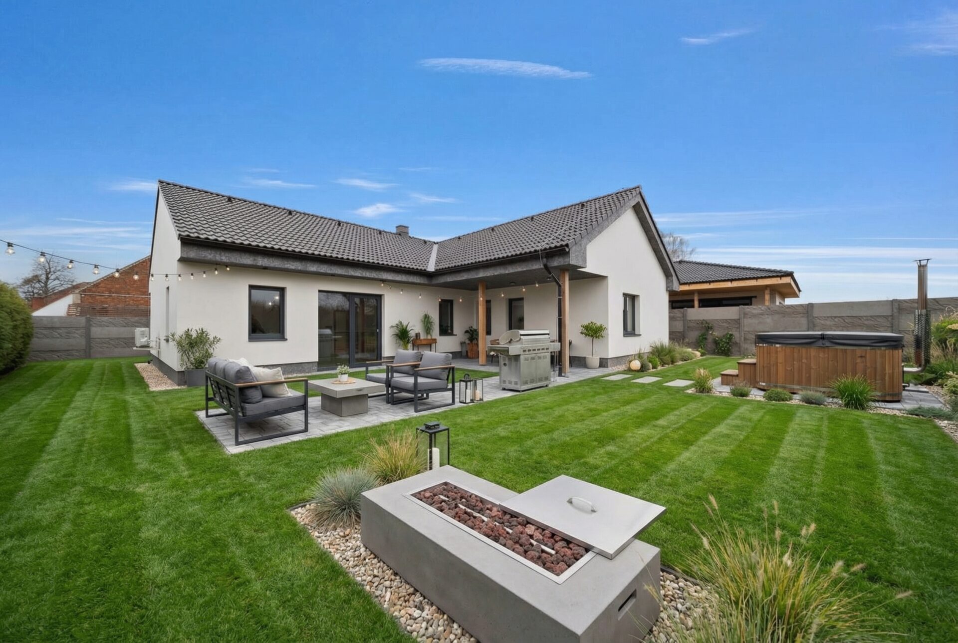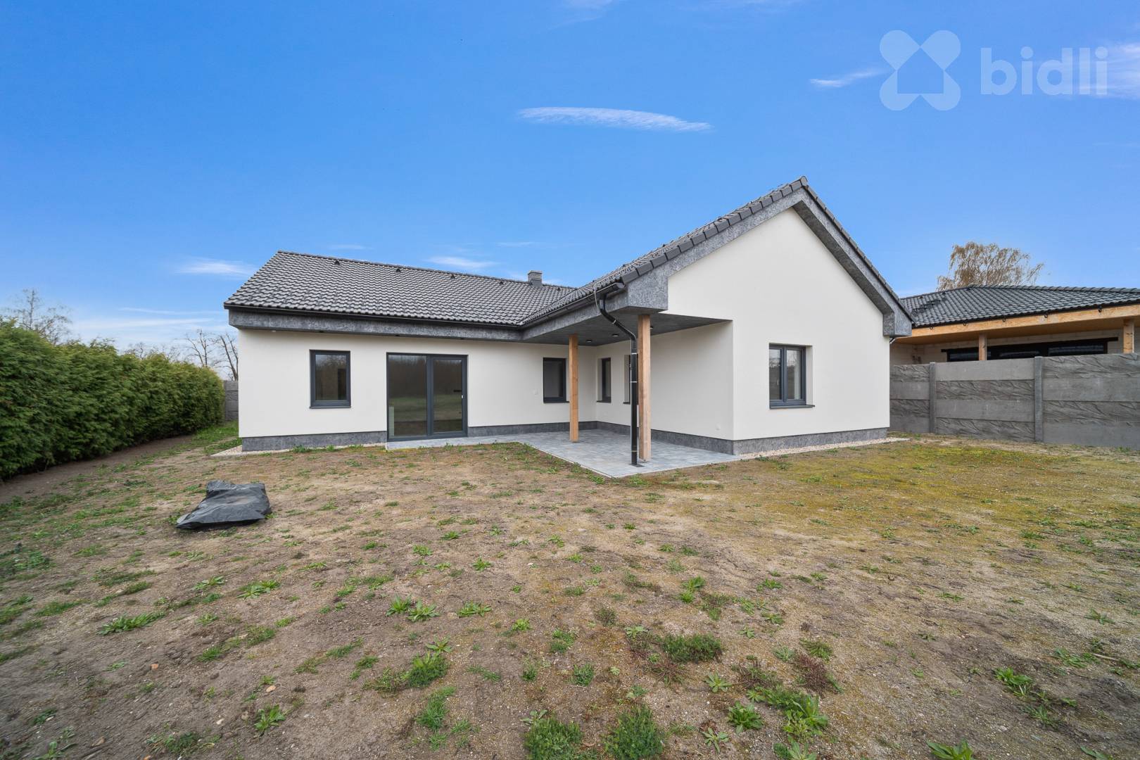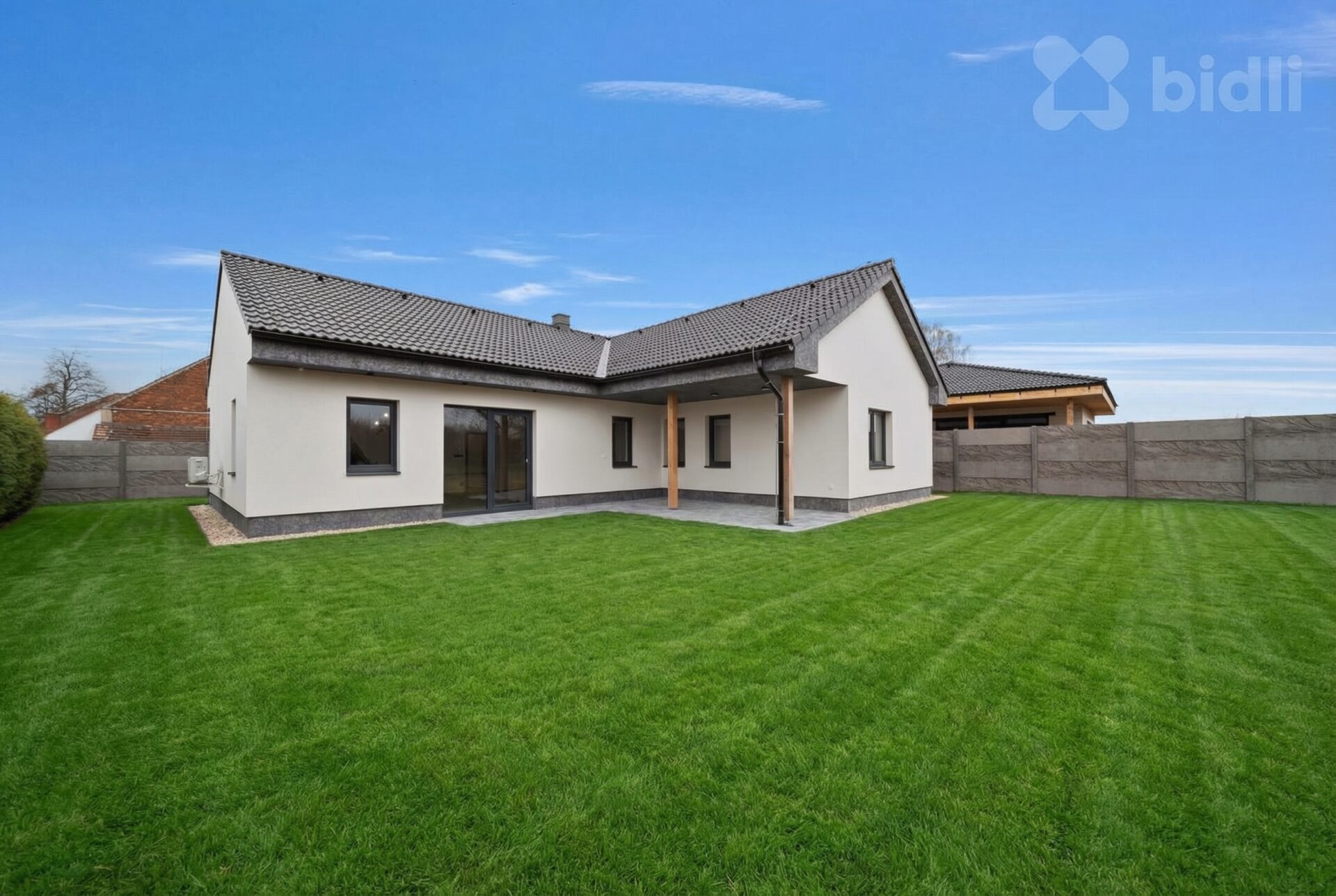 Ke koupi nabízíme samostatně stojící bungalov 4+kk s celkovou užitnou plochou 161,7 m2 (včetně kryté terasy 28,3 m2) v obci Újezd u Přelouče. Jedná se o novostavbu kolaudovanou v lednu 2025, dům je připravený k okamžitému nastěhování.