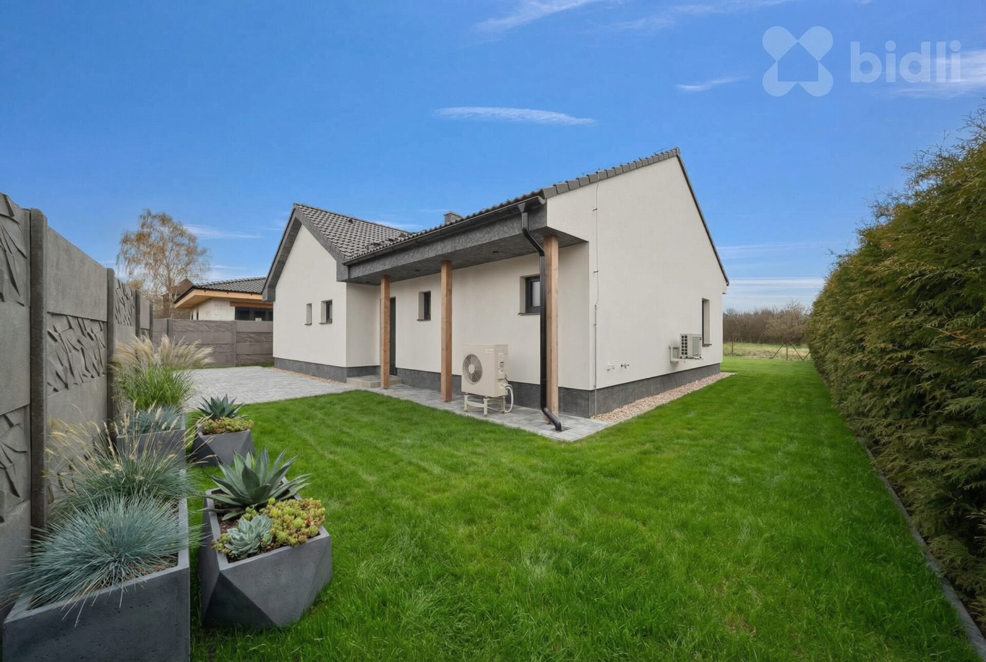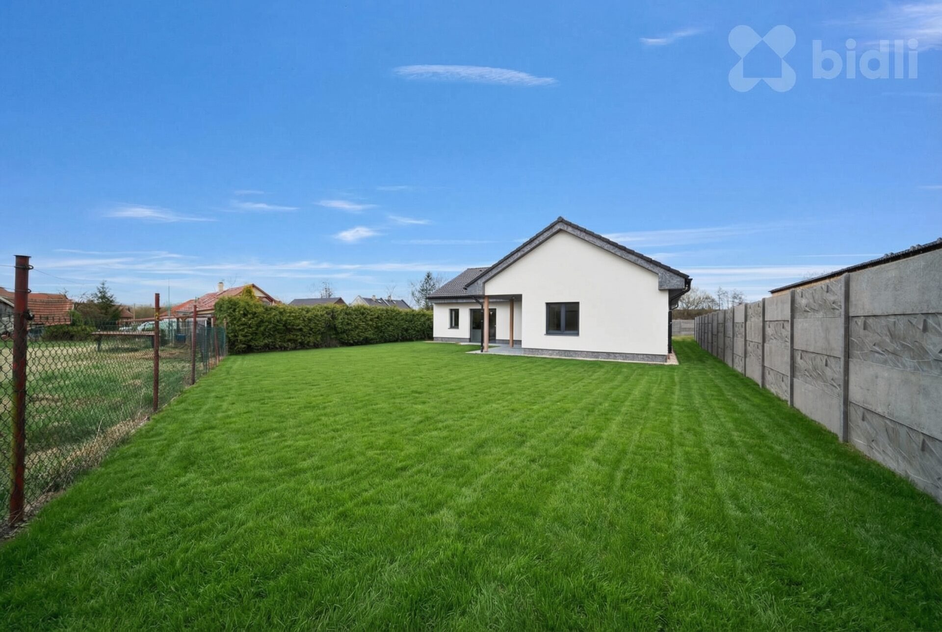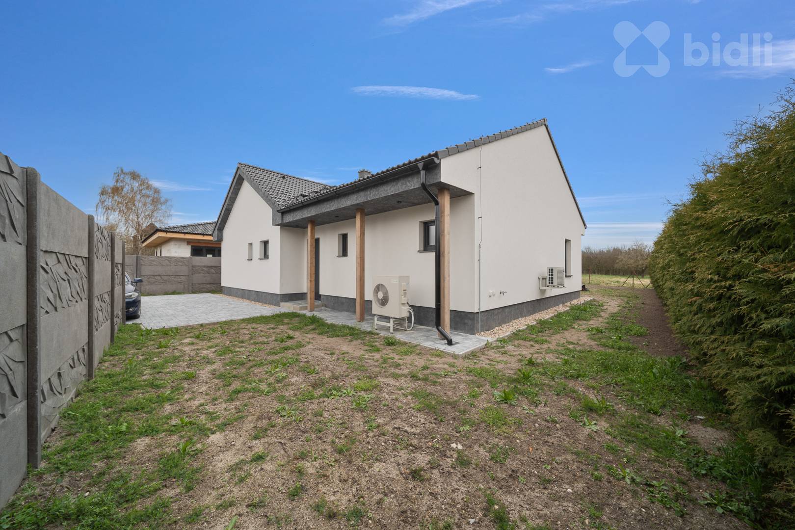 Pozemek má celkovou výměru 1 098 m2, z toho téměř 300 m2 tvoří příjezdová cesta a parkovací stání až pro 4 auta. Vjezd zajišťuje hliníková dálkově ovládaná brána, pozemek je oplocen betonovým plotem v prémiovém dekoru.