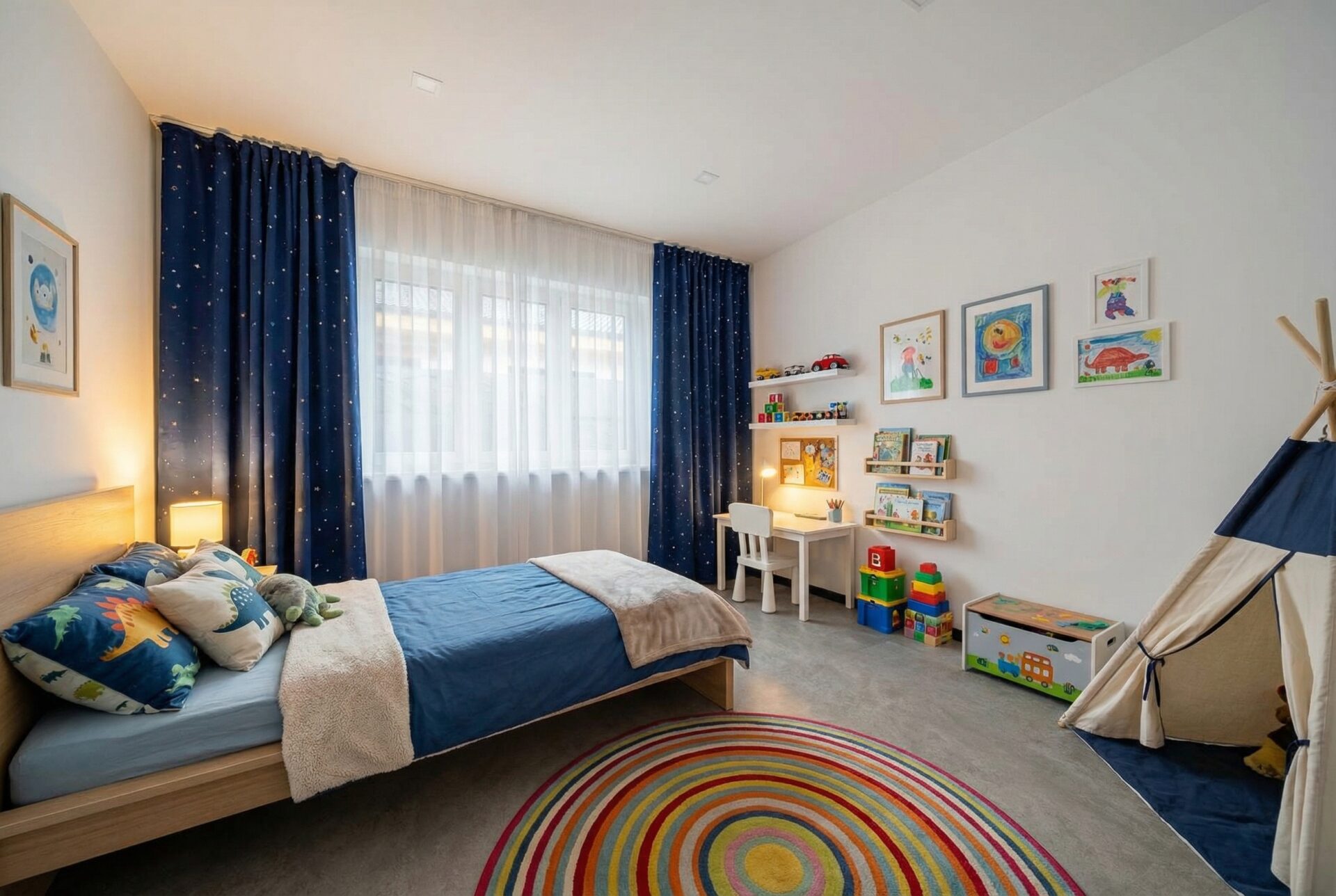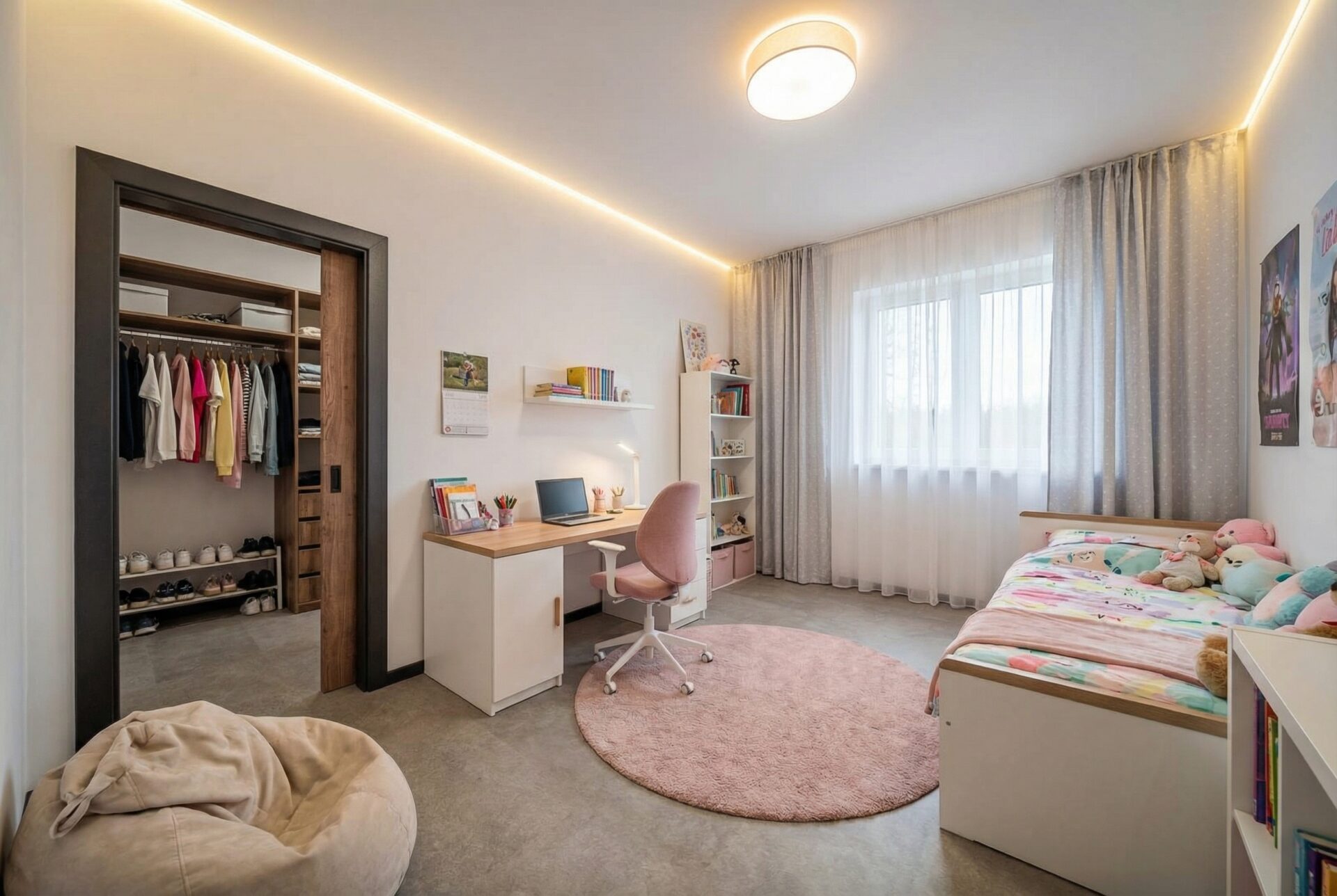 vinylová zátěžová podlaha Meister (v koupelnách a technické místnosti keramická dlažba)