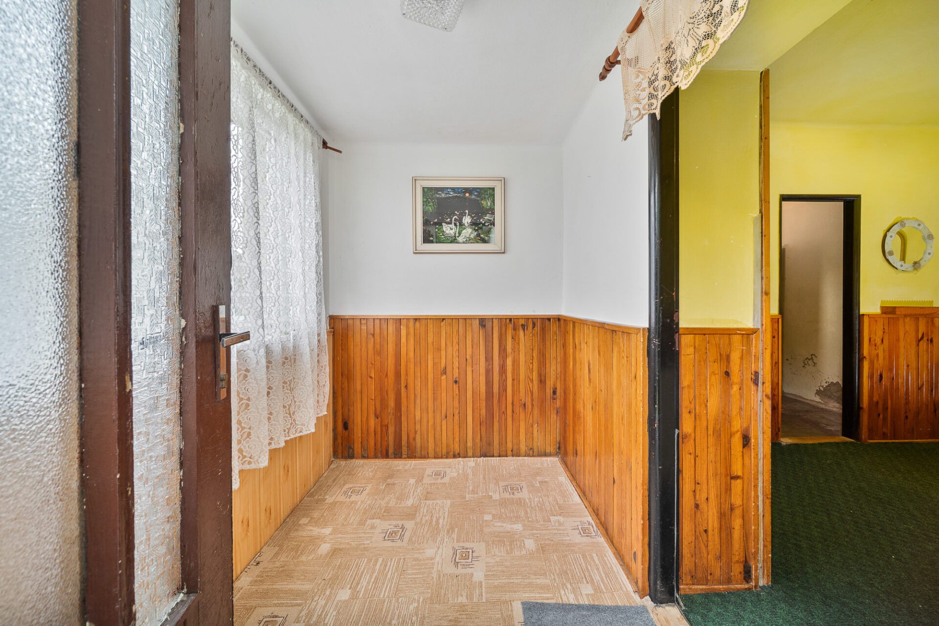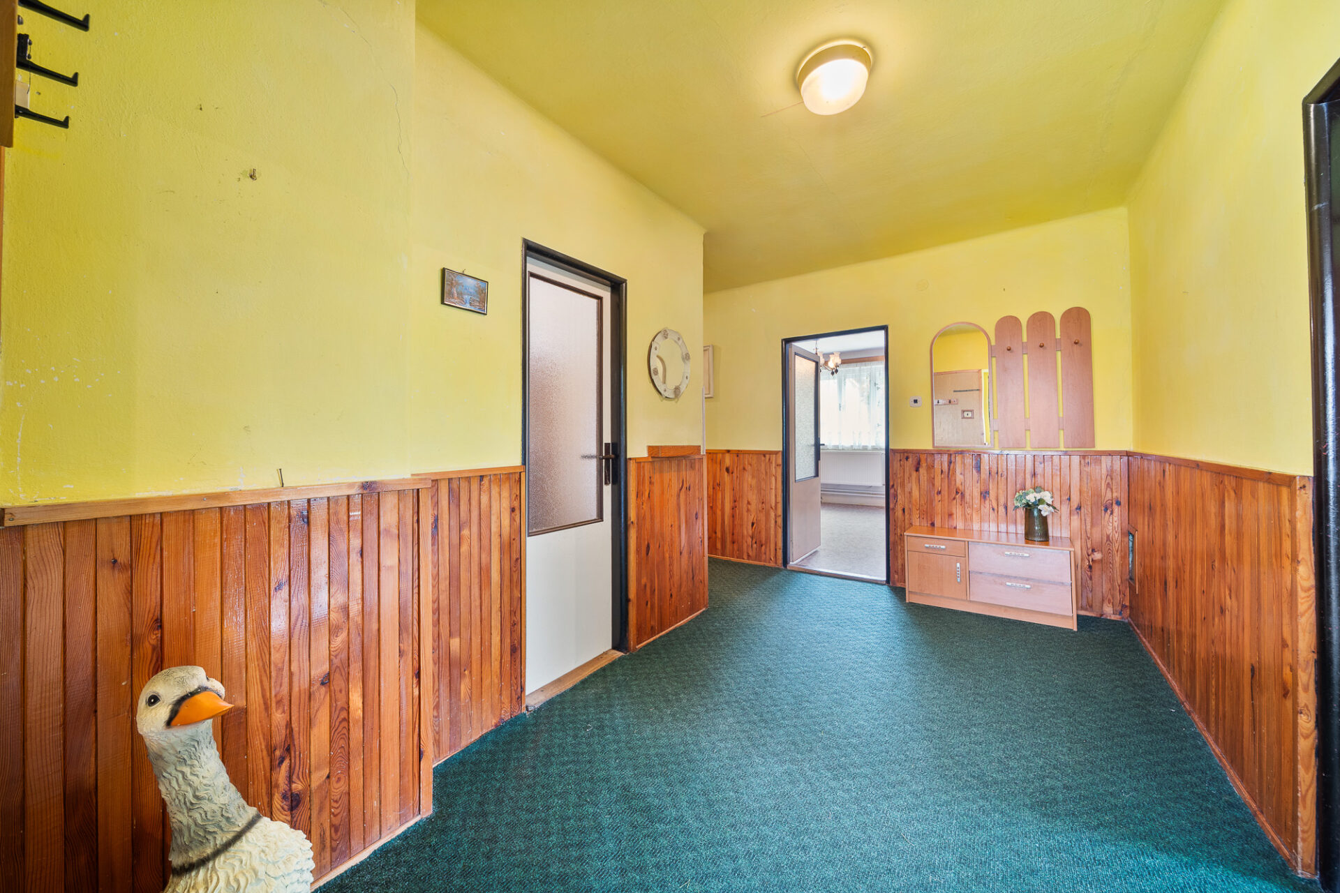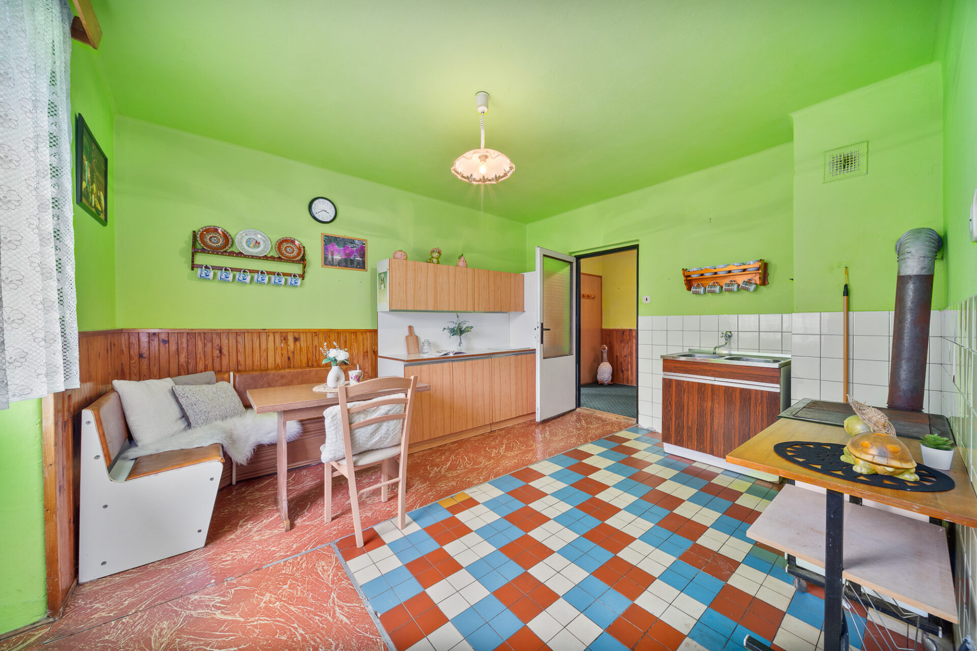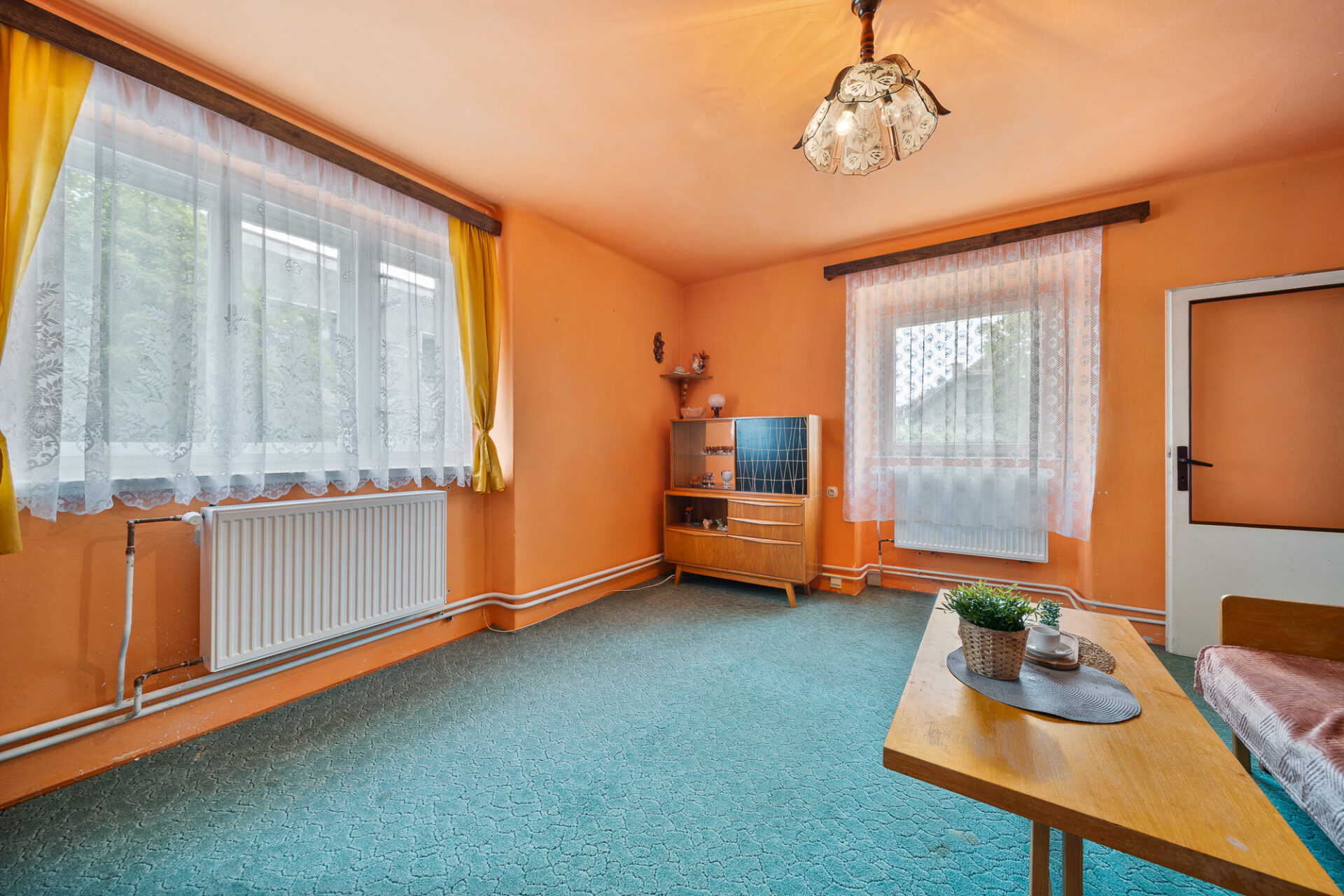 Dům je v původním, udržovaném stavu a nabízí podlahovou plochu přibližně 128 m2. Dispozice tvoří veranda, vstupní chodba, komora, prostorná kuchyně s kamny, obývací pokoj, dvě ložnice, koupelna s vanou a toaleta. Místnosti jsou světlé a prostorné, dům tak poskytuje příjemné rodinné bydlení. Velkou výhodou je možnost rozšíření o podkroví a úprava celého domu dle vlastního vkusu.