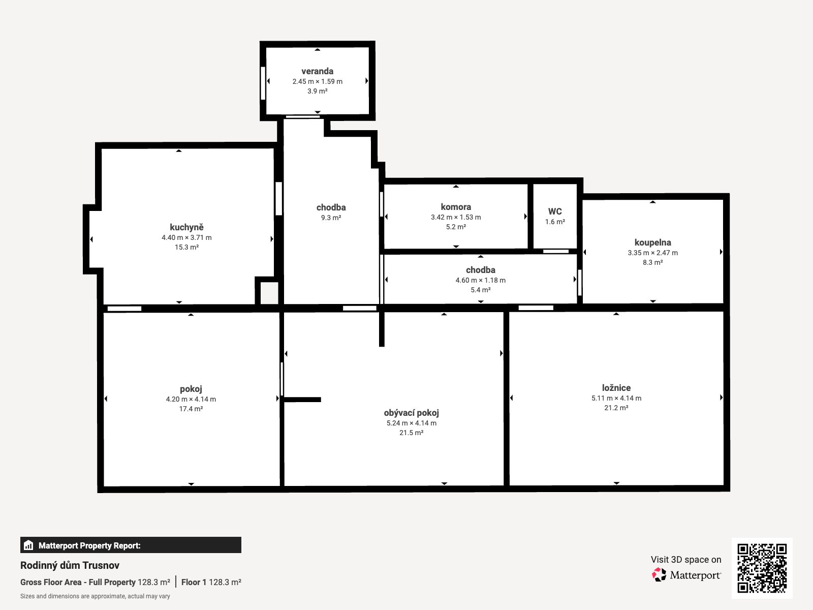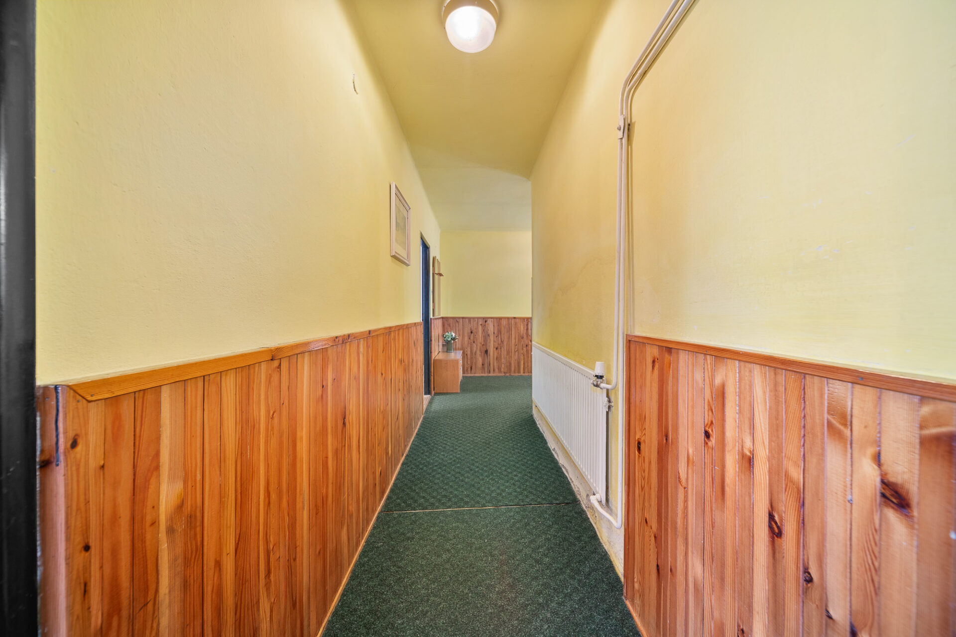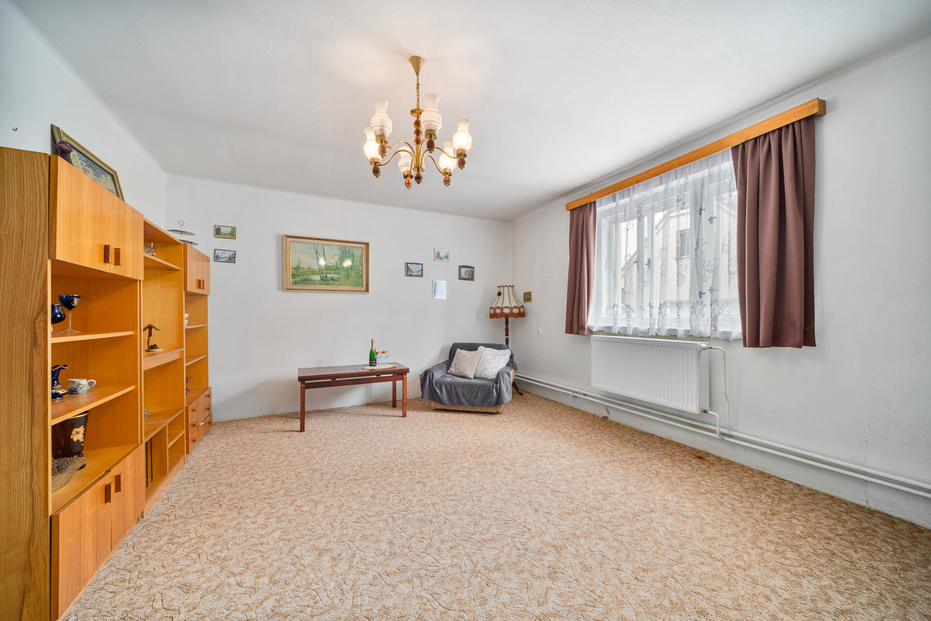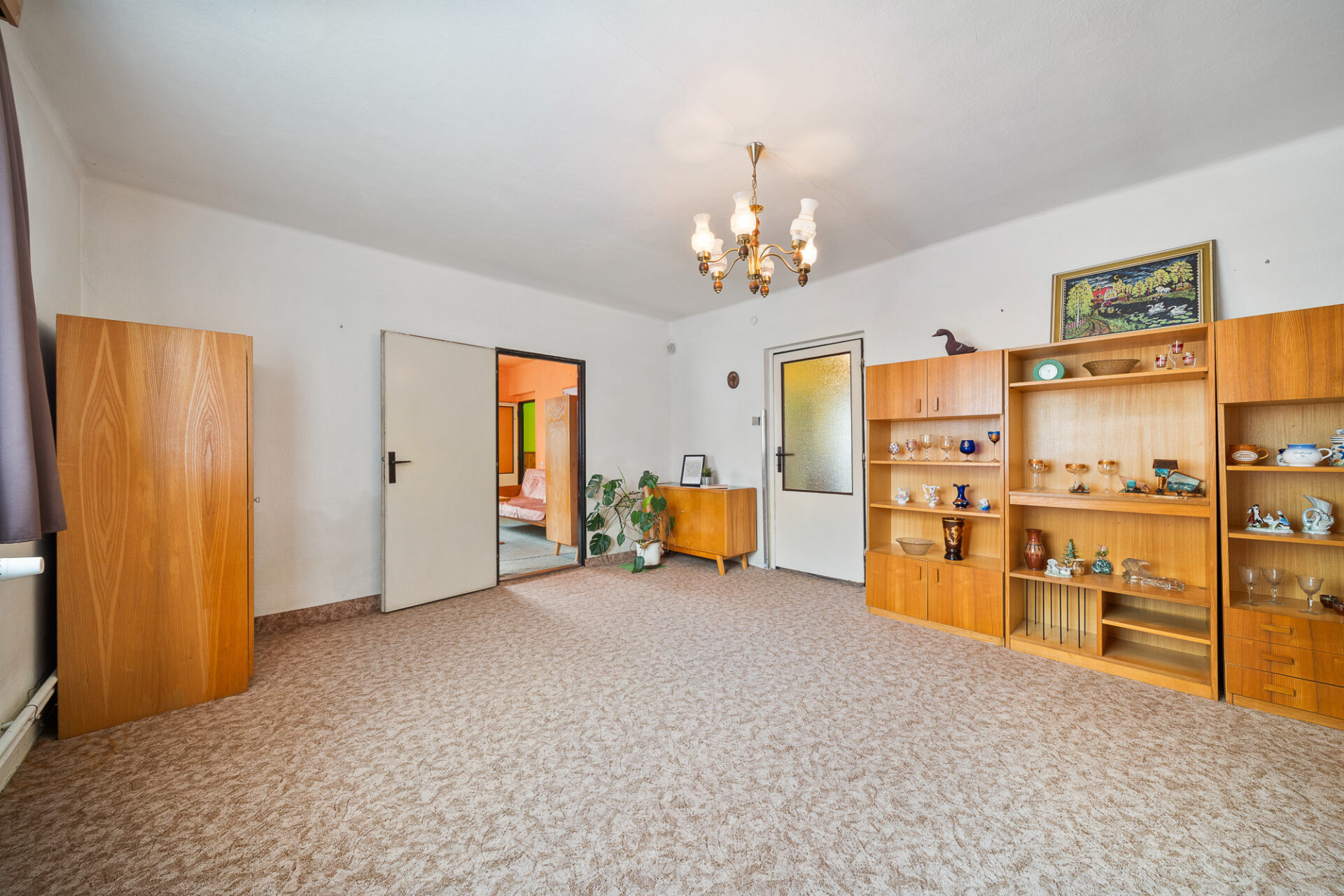 Dům je v původním, udržovaném stavu a nabízí podlahovou plochu přibližně 128 m2. Dispozice tvoří veranda, vstupní chodba, komora, prostorná kuchyně s kamny, obývací pokoj, dvě ložnice, koupelna s vanou a toaleta. Místnosti jsou světlé a prostorné, dům tak poskytuje příjemné rodinné bydlení. Velkou výhodou je možnost rozšíření o podkroví a úprava celého domu dle vlastního vkusu.