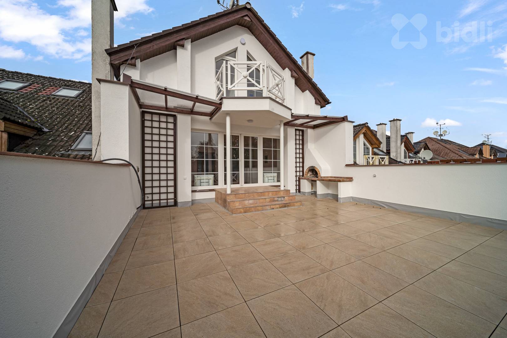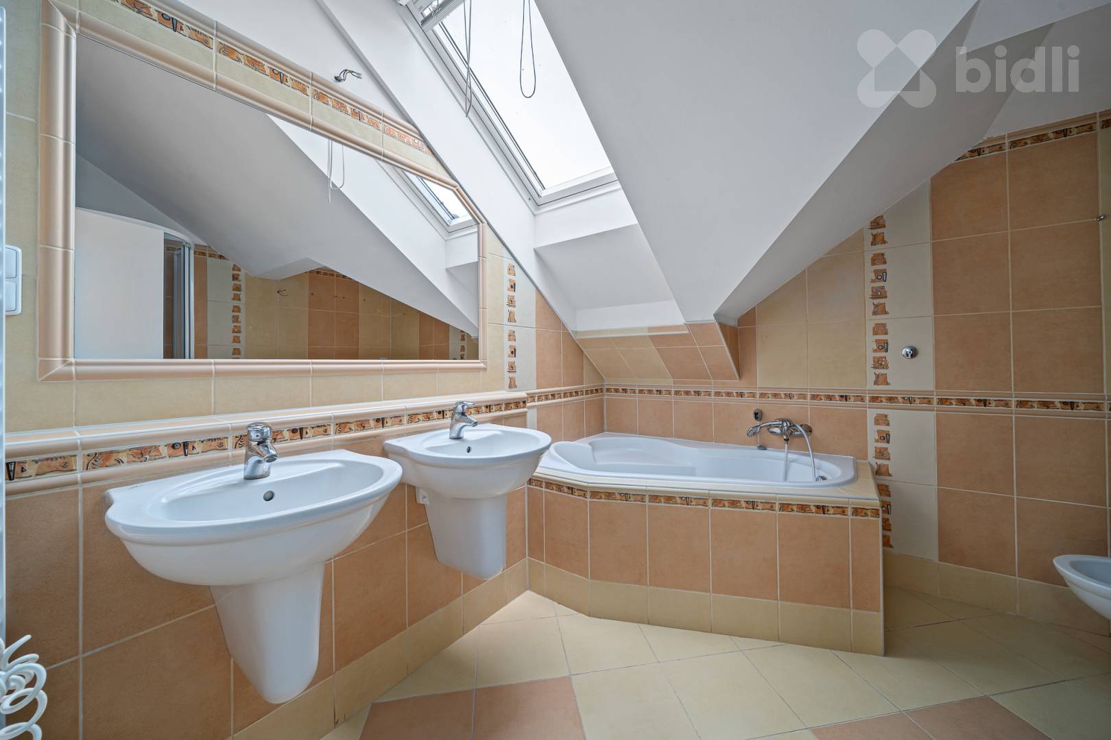 V 1. patře se nachází kuchyně propojená s prostorným obývacím pokojem se vstupem na terasu o velikosti cca 58 m2;, ideální pro rodinné posezení, odpočinek, vířivku, či letní grilování. Dále je zde technická místnost a samostatné WC.