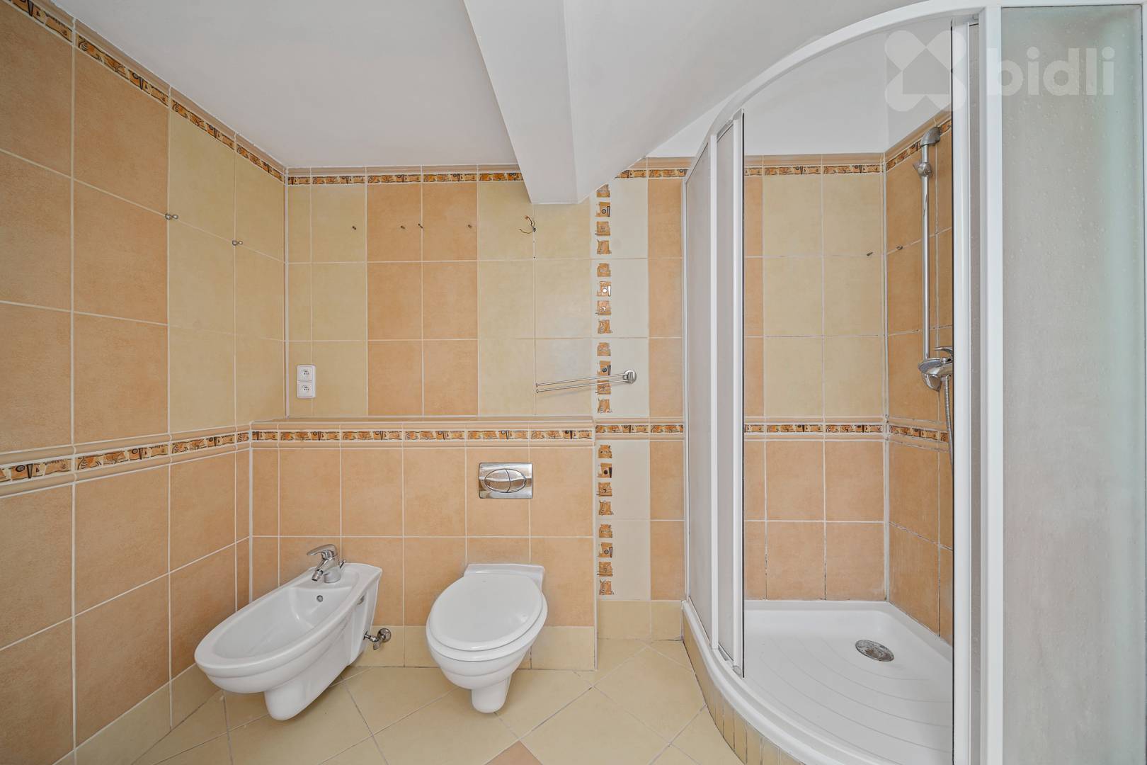 Nebytový prostor v přízemí domu má samostatný vstup přímo z ulice a užitnou plochu cca 150 m2;, což umožňuje jeho plně oddělené využití od obytné části domu. Dispozice zahrnuje vstupní chodbu, prodejní či kancelářský prostor, open-space místnost, dva sklady a kompletní sociální zázemí včetně sprchy a WC.